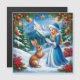 Snow Maiden in Winter Woodland Scene With rabbit