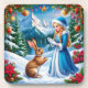 Snow Maiden in Winter Woodland Scene With rabbit Coaster