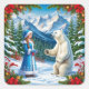 Snow Maiden with Festive Decor and Polar Bear Square Sticker