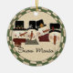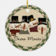Four snowmen and text that reads "Snow Mania!" on a keepsake round porcelain holiday ornament you're sure to love for years to come!