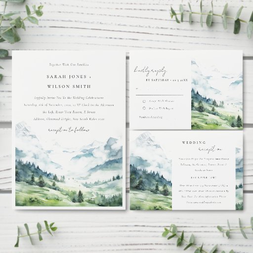 Watercolor Snow Mountain Landscape Theme Collection.- it's an elegant script watercolor Illustration of Snow Mountain landscape, perfect for your winter Mountain destination wedding & parties. It’s very easy to customise, with your personal details. If you need any other matching product or customisation, kindly message via Zazzle.