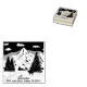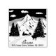 A stamp with a winter scene of snowy mountains, rustic cabin and a buck overlooking the valley below him. Original artwork by W.B.
