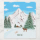 Winter scene with snowy mountains, rustic cabin and a buck overlooking the valley below him. Original artwork by W.B.