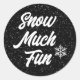 Snow Much Fun Snowflakes On Black Classic Round Sticker