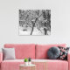 Snow on trees black and white photo on canvas print