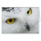 Beautiful and mysterious eyes of a cute snow owl. Close up photo of snow owl with yellow eyes.