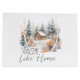 This seasonal nature-inspired Christmas forest design features the text "Snow Place Like Home." With the text is a scene of a rustic cabin nestled amongst snowy trees. This cosy traditional scene is perfect for adding a touch of nature to your holiday home décor.