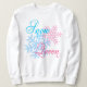 Pink and blue silhouette images of two beautiful snowflakes. Decorative text Snow Queen of blue and pink Colours. Funny, elegant, unique sweatshirt for women. You can change the style, colour, size of the apparel. Have fun and stay warm!