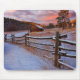 This photo features a snow covered rustic barn in front of a beautiful sunset on a Colorado ranch.