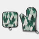 Snow Scene Festive Green Winter Trees Christmas Oven Mitt & Pot Holder Set