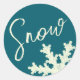 An elegant typography, script design for winter. A beautiful blue slate base with a yummy butter text colour" Snow" . Accented with a snowflake. Elegant winter design.