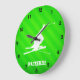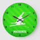 Cool, colourful kid's snow skiing, snow ski, skier, white extreme, xtreme winter sports silhouette design on bright neon lime green stripes pattern. Perfect gift for baby, toddler, kids, children, teens, or adults! Personalised the design by adding a child's name or custom text with athletic, sporty look sports white font. Visit our store, Birthday Party House, for more great customisable boy and girl products!