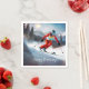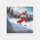 These birthday paper napkins feature a man skiing against a beautiful mountainous background.