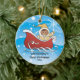 Baby's First Christmas Ornament features the cutest African American baby boy in a red sleigh set on a snow filled background. Personalise with your baby information and date and you're all set to go! Wonderful dated keepsake gift for your baby's 1st christmas.