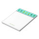 Your name on a notepad with colourful, stylish, cute and seasonal trim. Fir, spruce and pine evergreen trees dotted with snow sprinkles. Perfect choice for Christmas and all winter occasions and festivities...! Turquoise background. Original art and de.sign by carol tannura.