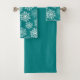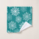 The winter themed towel set shows a snow star pattern on a turquoise background.