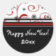 Happy new year stickers in red, white and black snowflakes and swirls pattern. An elegant addition to New Year's cards or as envelope seals.