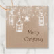 Rustic favour tag featuring hand drawn white lanterns with snow on a background picture of brown kraft paper. Suitable Favour tag for handmade goods such as Christmas ornaments, christmas gifts, wood carving, home décor or jewellery.