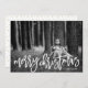 Awesome Merry Christmas Photo Photo Card Script in Snow White, wishing your loved ones in style. Your photo on the back or current backing pattern. Funky Calligraphy script style. Lettering style. Big photo design. Happy, festive design. Its a wonderful life.