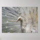 A White Indian-Blue peacock flaunts its showy white tail feathers.