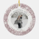 A cosy winter Christmas ornament design with cute hygge vibes, featuring your favourite photo in a snowball layout, set amidst a a flurry of white holiday snowflakes on a chic neutral pastel background. Personalise with the year and your family name on the back surrounding a second, smaller photo.
