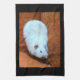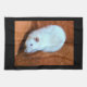 This awesome kitchen towel features a photograph of Snowball the Himalayan fancy rat. The little old guy was taking a rest when this photo was taken, and who could blame him.