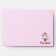 A pretty pink envelope for your Holidays mail with a cartoon cow holding Christmas lights .