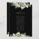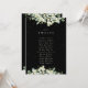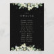 An elegant black winter wedding table number/seating chart card featuring hand painted snowberries and eucalyptus. All text is fully editable and there is space to accomodate twelve names. Once your names are input, the font size and the vertical space between lines can be altered in edit view for a better fit. Alternative designs, colours and coordinating items are available in my store.