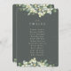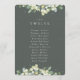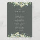An elegant dark grey green winter wedding table number/seating chart card featuring hand painted snowberries and eucalyptus. All text is fully editable and there is space to accomodate twelve names. Once your names are input, the font size and the vertical space between lines can be altered in edit view for a better fit. Alternative designs, colours and coordinating items are available in my store.