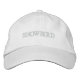 A classy embroidered hat with the text Snowbird. Add your text for a one-of-a-kind personal product.