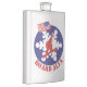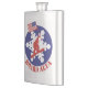 The product is a good size and came exactly as it was pictured. The lid is not attached to the flask, which could be dangerous on drunken nights... The print came out surprisingly well and looks very sharp. Would definitely recommend.
