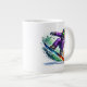 This jumbo size coffee mug is shown in white with a sports snowboarder art print.