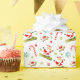 Creative snowboarder holiday gift wrap or party decoration featuring Santa snowboarder surrounded by cupcakes, cookies and Christmas candy.
