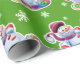Christmas giftwrap Snowman Snowboarding. Green background. See also my other designs featuring Snowfolk Winter Wonderland sledging. Sledding. Loveable wintery characters with sledging snowgirls, skiing snowmen and skating snowmen and the occasional penguin. : ) Also check out the matching loveable wintery snowmen and snowgirl characters playing their instruments in a Christmas band. A striking giftwrap design to brighten up your presents when the snow starts falling. See the other items in this seasonal range.