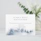 Designed to coordinate with our Snowbound wedding collection, this elegant winter RSVP card features a snowy forest scene with watercolor pine trees in blue and grey. Customise with your desired response date and custom accept and decline wording in classic blue-grey lettering.