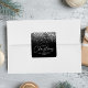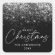 Modern Christmas stickers featuring white snow flurries at the top of the design with a black background. "Merry Christmas" is displayed in a trendy white calligraphy script with your family name and the year shown below in white lettering. Use the festive holiday stickers to seal Christmas presents, favor bags, and holiday envelopes.