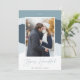 A modern and elegant holiday card in soft colours featuring your favourite vertical or portrait orientated photo on a colorblock snowdrift background in shades of blue and grey. "Joyous Hanukkah" appears beneath in beautiful handwritten script, with your family name beneath.