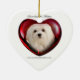 This cute ornament features Snowdrop, a sweet little Maltese Dog wearing a Santa Hat looking through a frosty window.