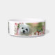This cute feeding bowl features images of Snowdrop, a sweet little Maltese Dog.