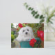 A pretty cute and colourful postcard with a photograph of Snowdrop the Maltese