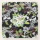 Snowdrops & Orchids: Sketched Black Pattern Glass Coaster