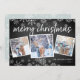 Modern and festive holiday photo card features three square photos in a collage layout on a black chalkboard background, with a top and bottom border of falling snowflakes and "Merry Christmas" across the top in hand sketched typography. Personalise with your names and the year at the lower right.