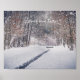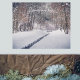 Nature photography. Peaceful winter landscape in soft tones: a bridge over a small stream, trees covered with snow. Perfect addition for Scandinavian or minimalist style interior. You can delete the text "Love winter" or replace it with your own message (click "Personalise this template").