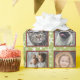 This personalised photo collage wrapping paper is perfect for Christmas. The design has a white snowflake pattern behind 5 of your custom pictures, each repeated 14 or 15 times across the paper. The background is green with dark-red frames around your pictures. Square Instagram-style photos work best, but you can add any photo dimension and it will automatically "fill" the square shape (with some cropping of photos that aren't square). Use the easy templates to add your pictures. Contact PictureCollage for design assistance.