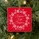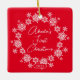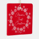 Abuela's First Christmas Ornament set on a red background framed with a white snowflake wreath. A Wonder grandparent Christmas gift sure to be treasured for many years to come. !