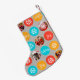 Fun holiday words and sentiments Christmas family or friends photo stocking in warm grey, yellow, orange red, blue aqua and white. Customise with a selection of your own special photos. Great to give gifts in. Uniquely designed by Sarah Trett.