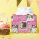 Create your own custom Christmas wrapping paper featuring up to three of your best photos incorporated into this whimsical dark berry pink and faux glitter pink snowflakes design. Personalised Christmas gift wrap is sure to delight friends and family alike with the surprise of family pictures on the deep rich raspberry pink background. Designed in a semi-diagonal scatter print, your photos will appear in three sizes, each with rounded corners and a border frame of white. The final elegant touch is the pink faux glitter snowflakes scattered around your pictures on the dark pink background, making this personalised photo wrapping paper an elegant accent to your Christmas colour trend of pink.