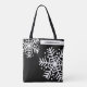 The promotional minimalist Snowflake Black & White Company Name Website Tote Bag is a classic giveaway to loyal customers, or as a reward, or giveaway during the holiday season.