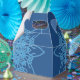 Inspired more from the holiday classic paper cutouts snowflakes than the real-life snowflake this is a digitally drawn snowflake pattern in blue. Recommended backgrounds of white, light, or dark blue.