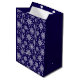 A decorative white snowflake pattern on a dark blue background. This is an elegant and classic gift bag for many occasions during the winter season, both Christmas ond Holiday season and winter birthdays and events.